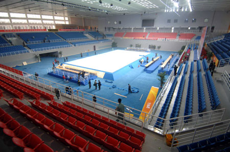 An interior view of the newly-built judo venue for next year's Games is seen in this photo November 7, 2007 in Bejing Science and Technology University. The venue will also hold the taekwondo event of the Beijing Olympics, as well as the wheelchair basketball and wheelchair rugby event of the Beijing 2008 Paralympic Games. [Xinhua]