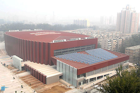 This photo, taken on Nov. 7, 2007, shows an overall view of the newly-built Beijing Science and Technology Gymnasium, the venue for the judo competitions of next year's Beijing Olympic Games. The venue will also hold the taekwondo event of the Beijing Olympics, as well as the wheelchair basketball and wheelchair rugby event of the Beijing 2008 Paralympic Games. [Xinhua]