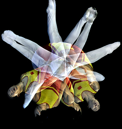 Ye Shuai of China competes in men's trampoline during the 2007 Good Luck Beijing Olympic test games at the National Indoor Stadium in Beijing on December 3, 2007. Ye won the gold. [Xinhua]