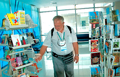 A visitor to Qingdao International Sailing Regatta, an Olympic test event held in August in the coastal city of Qingdao, checks out the lastest paperbacks on offer. [Courtesy of China National Publications Import and Export Corporation (CNPIEC)] |