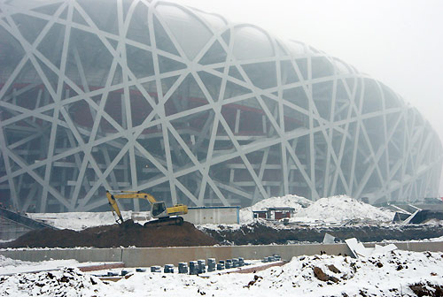 The National Stadium in snow in December 2007. [asianewsphoto]