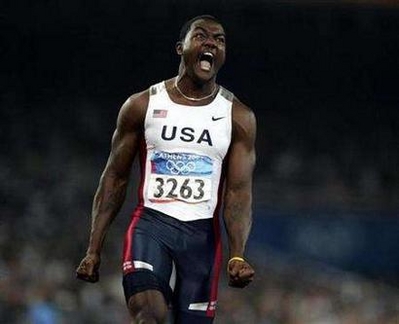 Justin Gatlin celebrates winning the 100 metres final at the 2004 Olympic Games in Athens, August 22, 2004. [Agencies]