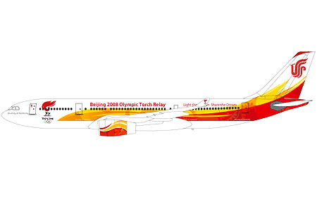 The message of the Beijing 2008 Olympic torch relay is highlighted in the design of the chartered aircraft to be employed in the relay activities, as shown in the photo released on Wednesday, January 16, 2008. [Xinhua]