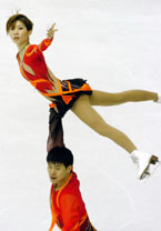 | Zhang Dan and Zhang Hao perform to win the pairs free skating at China's 11th Winter Games in Qiqihaer, Northeast China's Heilongjiang Province, Jan. 20, 2008. [Xinhua] |