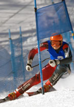 Xia Lina competes to win the women's super-giant slalom title at the Chinese 11th National Winter Games in Qiqihaer, Northeast China's Heilongjiang Province, Jan. 20, 2008. [Xinhua] |