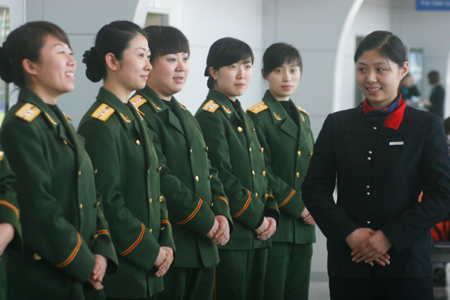 Women inspectors go through etiquett training for Olympics (Xinhua) Updated: 2008-01-22 15:35