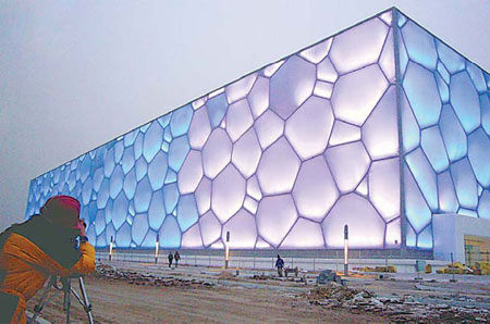 With the lights on, the Water Cube acquires a dreamlike character. [China Daily]