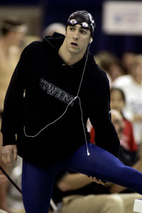 Michael Phelps stretches before his heat in the Men's 200 Yard Freestyle at the Short Course National Championships in Atlanta, Georgia on November 30, 2007. [Agencies] |