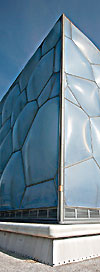 "The blue-colored material is much lighter than conventional glazing structures with the same lighting effect. So the cost of its supporting steel structure was reduced considerably as well."