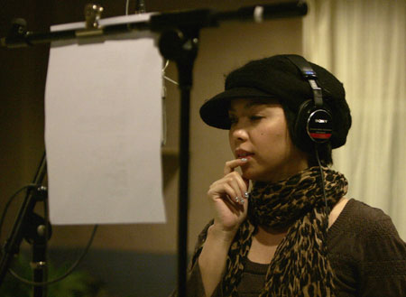 Taiwan pop star Chang Hui-mei records a song in English called "Forever Friends" at a studio in Beijing January 24, 2008. [Agencies]