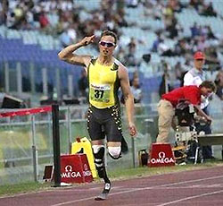Pistorius won a gold and bronze at the 2004 Athens Paralympics.