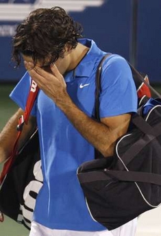Switzerland's Roger Federer leaves the court after losing his match to Britain's Andy Murray at the ATP Dubai Tennis Championships, March 3, 2008. [Agencies]