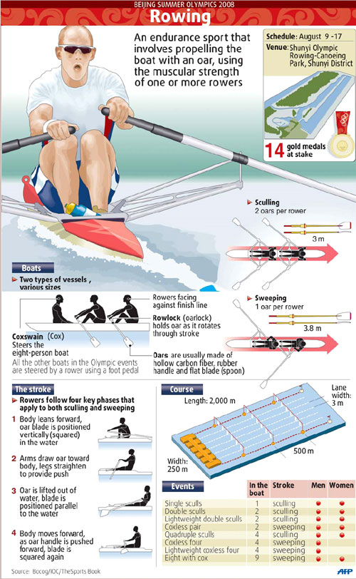 Meanwhile, rowing powers including Germany, Romania, the United States and Great Britain, along with rising stars from Australia, New Zealand, and home team China, have a good shot of claiming gold on the 2-km course at Shunyi Rowing-Canoeing Park this August.