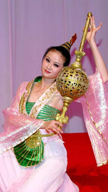 A Chinese artist performs a traditional dance to promote "Visit China in Olympic Year", in Tokyo, Japan, March 17, 2008. Some 300 Japanese attend the event. [Xinhua]