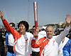 A protestor (R) tries to grab Olympic torch from Jin Jing, a Paralympian torchbearer in wheelchair, during the torch relay in Paris in April 7, 2008.