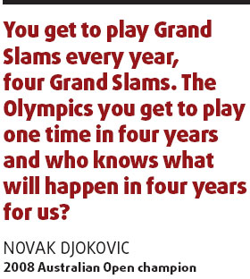 "You get to play Grand Slams every year, four Grand Slams. The Olympics you get to play one time in four years and who knows what will happen in four years for us?