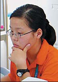 Chen Cong, 20, born in Zhejiang, is a student of economics at Peking University. She was chosen to assist press journalists working in the press workroom during the test events last August in Shunyi, 30 km from downtown Beijing.