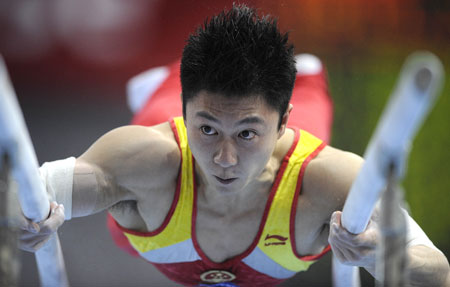 Li has just made it back onto the China men's team and his exceptional performance at the recent Stuttgart World Cup encouraged expectations of a third victory on the parallel bars.