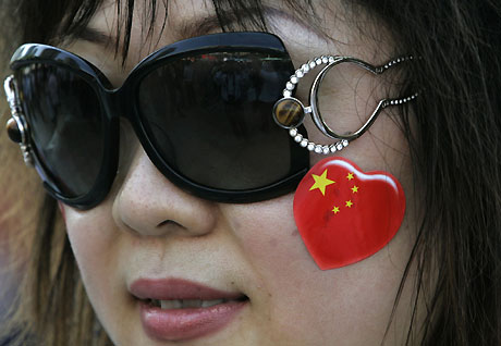 An onlookers waits for the Olympic torch relay on a main street at Shenzhen in southern China's Guangdong province May 8, 2008. On the same day, the Olympic flame for the first time in history reached the top of the world, Mount Qomolangma at 8,844 meter. [Agencies]