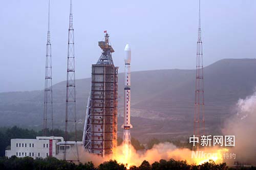 A Long March-4C launch vehicle carrying the Fengyun-3 (FY-3), the second Olympic weather forecasting satellite, lifts off from the Taiyuan Satellite Launch Center in north China's Shanxi Province at 11:02 a.m Beijing Time. [chinanews.com]