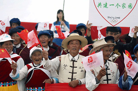 Local residents welcome the Olympic flame in Lijiang, southwest Yunnan Province on June 10, 2008. [Xinhua]