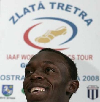 Jamaica's Usain Bolt smiles during a news conference before the "Golden Spike" World Athletics Tour meeting in Ostrava June 11, 2008. [Agencies] |