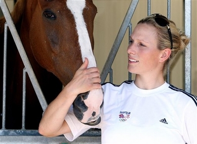 Zara Phillips, granddaughter of Britain's Queen Elizabeth II, poses with her horse Toytown, at Stow-on-the-Wold, England, in this June 9, 2008 file photo. Phillips, 26, withdrew from the Beijing Olympics equestrian competition Wednesday June 11, 2008. [Agencies]