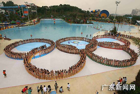 Chinese women in bikinis form the five Olympic rings at Changlong Water Park in Guangzhou, Guangdong Province, June 15, 2008. The 1,202 who participated in the event broke the Guinness World Records for the largest swimsuit photo shoot, which was previously held by 1,010 Austrians in 2007. [Chinanews.com]