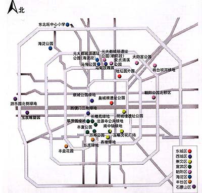 The other parks mentioned below have similar facilities to Yuandadu Park, like backup wells, toilets, power generators, and areas for tents. They are located near Olympics venues or where many foreigners live and work.