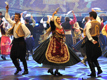Greek artists perform a folk dance during the opening show of the "Meet in Beijing 2008 Arts Festival", in Beijing, June 23, 2008. The theme of the cultural event this year incorporates the Olympic Games. [Xinhua]