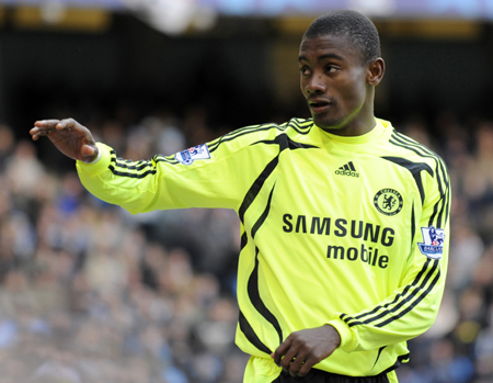 Chelsea's Salomon Kalou celebrates scoring against Manchester City during their English Premier League soccer match at Eastlands stadium in Manchester, northern England, April 5, 2008. [Agencies]