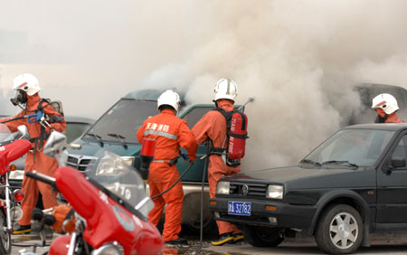 Chinese armed police take part in an anti-terrorism in Tianjin municipality June 24, 2008. The exercise, the first in a series of drills dubbed "Binhai 6", was based on the scenario of a terrorist chemical attack in an Olympic football venue. [Agencies]