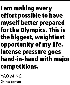 Well aware of the responsibility he bears, Yao has begun his Olympic preparations as early as possible.