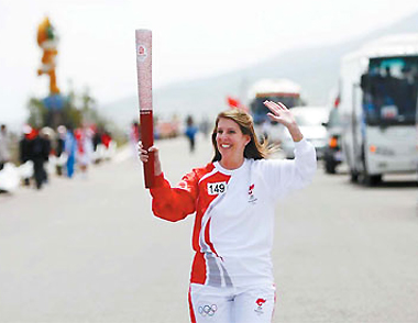 Kitted out in the now familiar red-and-white tops and training pants provided by adidas, her employer, the director of the sports apparel manufacturer's 2008 Olympics Program says her role in the relay was a wonderful reward for several years of hard work.