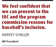 "We are working very hard to return the game to the program in 2016 - even in London if we can," Schiller said. "We feel confident that we can present to the IOC and the program commission reasons for baseball's inclusion."