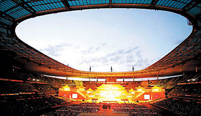 Opera epic Turandot, directed by Zhang Yimou, is staged at the Stade De France, the largest stadium in Paris, on May 28, 2005. File photo