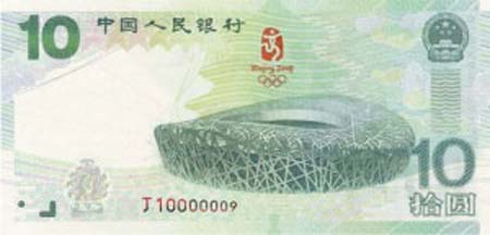 A clear watermark appears on the picture of the National Stadium in the shape of the Arabic numeral "10" and the Games of XXIX Olympiad in the Chinese characters, said the bank.