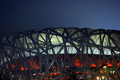 The National Stadium, also known as the "Bird's Nest," is seen lit at night in Beijing in this April 15, 2008 file photo. [Agencies]