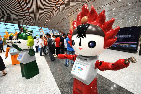 Robot Fuwa debut at Beijing Capital Airport
