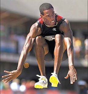 Kenta Bell competes in the men's triple jump final of the US track and field Olympic trials on July 6 in Eugene, Oregon. [Agencies]