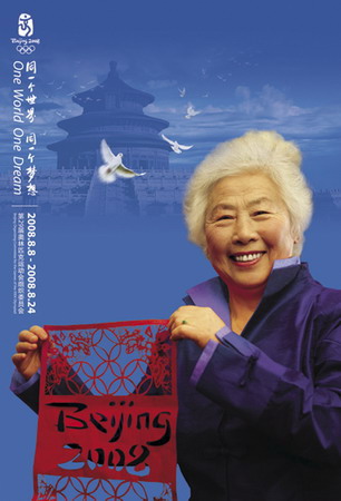 A handout photo released by the Beijing Organizing Committee for the Games of XXIX Olympiad (BOCOG) on July 18, 2008 shows a "humanity" poster for the 2008 Beijing Olympic Games. The posters aim to spread the Olympic spirit to all citizens, according to the BOCOG's press release. [Agencies]