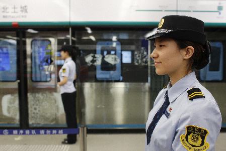 Beijing subway controllers stand on a subway platform inside a new station near the Olympic Stadium during a media tour in Beijing July 19, 2008. Beijing opened three new subway lines on Saturday, delayed from a planned late-June start but just in time to carry passengers before next month's Olympics. [Agencies]