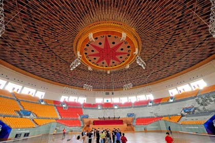 The ceiling of the newly-renovated Worker's Indoor Arena (BWIA) in Chaoyang District of Beijing is seen in this picture taken on May 19, 2008. The venue will host the 2008 Olympic boxing and Paralympic judo events. [Xinhua]