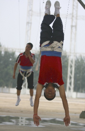 Students from the Tagou martial arts school from Henan province practise at a training base on the outskirts of Beijing July 18, 2008. More than 2,000 students from Tagou martial arts school will perform during the opening ceremony of 2008 Beijing Olympic Games and have been training on the outskirts of Beijing for a year, local media reported. Picture taken July 18, 2008. [Agencies]