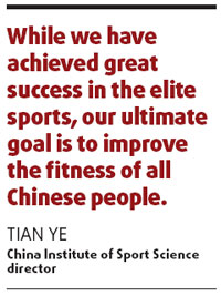 "While we have achieved great success in the elite sports, our ultimate goal is to improve the fitness of all Chinese people," Tian said.