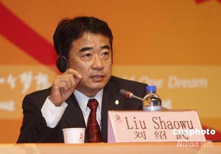 Director of the Beijing Organizing Committee for the Olympic Games security department, Liu Shaowu, speaks at a press conference in Beijing on Wednesday, July 23, 2008.[cnsphoto]