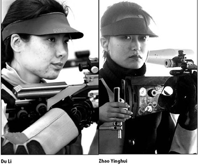If all goes as planned, either reigning gold medalist shooter Du Li or world champion Zhao Yinghui will raise 2008's first gold at the Beijing Shooting Range.