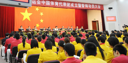 The Chinese delegation to the Beijing Olympic Games is formed in Beijing July 25, 2008. The 1,099-member delegation includes 639 athletes for the Games, which is to open on August 8. [Xinhua]