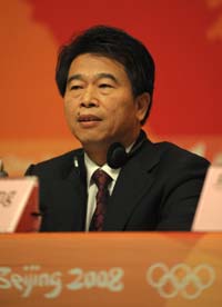 Du Shaozhong, deputy director of Beijing Municipal Environmental Protection Bureau, speaks at the press conference at the Main Press Center (MPC) of the Beijing Olympic Games, July 26, 2008. [Xinhua]