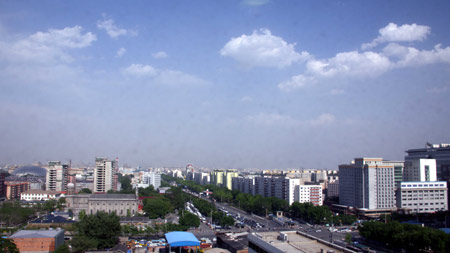 Blue sky above Beijing can be seen in this July 4, 2008 file photo. [Xinhua]